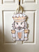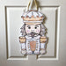 Door hanger measures 12.5" tall x 20" wide x 1/4" thick. Hangs approximately 23" tall with ribbon.