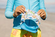 Our Dino face mask swim goggle feature a colorful dinosaur print with a light grey background, paired with a blue frame and clear lenses. Youth Size - Ages - 4-8 No More Pulled or Tangled Hair Fun, Fashionable, Comfortable High Visibility, Anti-Fog Lenses Shatter Resistant Polycarbonate Lenses Hypo-Allergenic—Latex & PVC Free Unique and Patented Design Sensory friendly and great for cochlear implants With Splash Place Swim Goggles exceptional ease of use and style, you will always be ready to go make a SPLASH! Patented - U.S. Patent Number D1053753